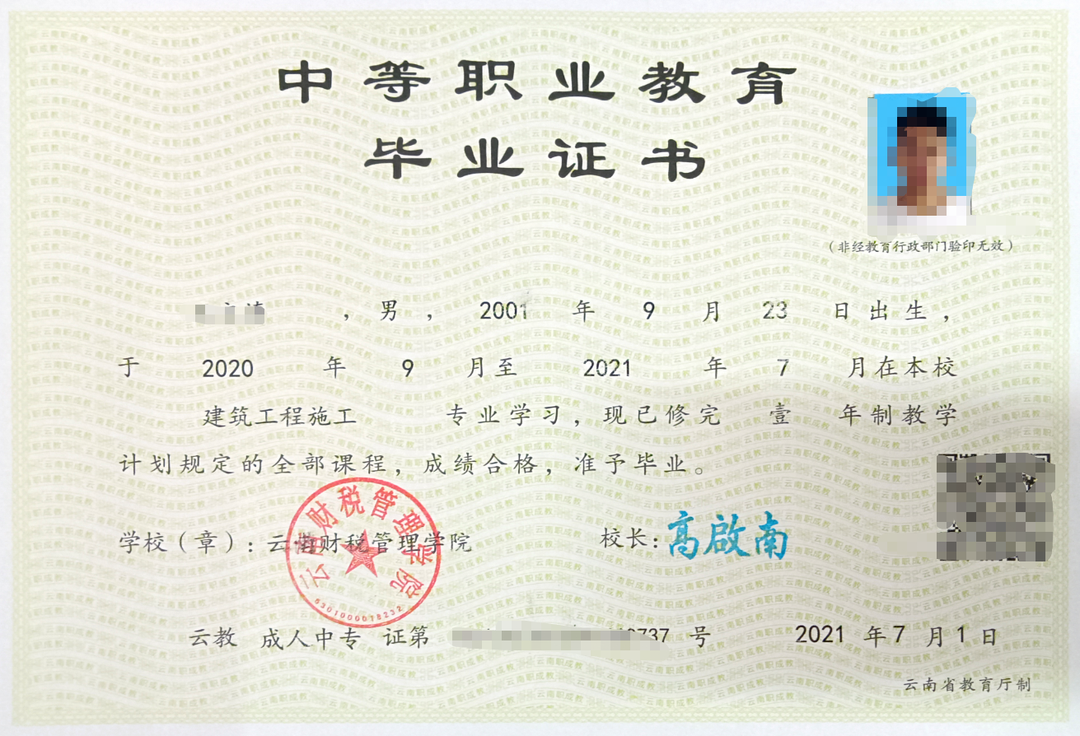 云南省中專畢業證P圖模板與免費下載指南05-30